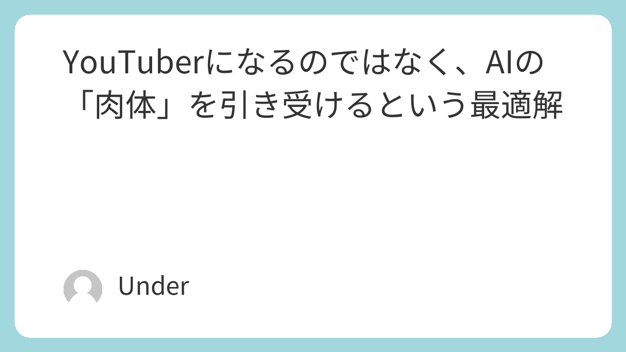 ここで一つの合理的な仮説に行き着いた。 私が「YouTuber」になる必要はない。ただ感情を排し、この圧倒的な知能が現実世界で検証を行うための「手足(アバター)」として立ち回ればいいのではないか。